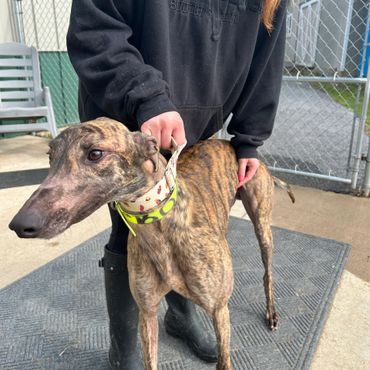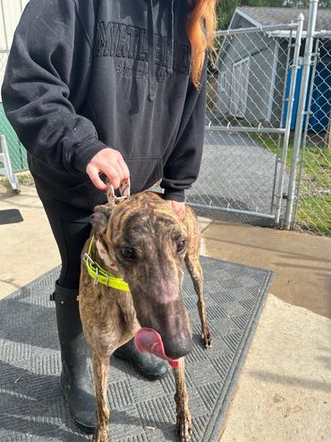 Boz is a tiny boy with a lot of energy. He is very much attached to his humans. And loves to nibble at your fingers to show it. He is getting along well with the other Greys at the kennel. He did just arrive so we are still getting to know him and will update you as we do. He will be neutered this week and should be ready to go by the weekend.