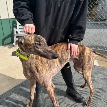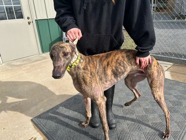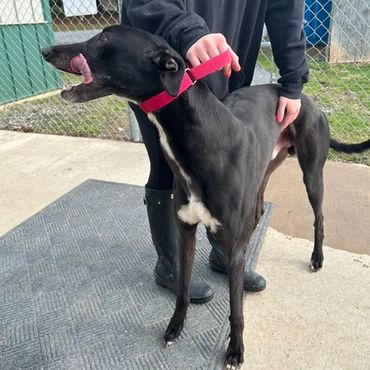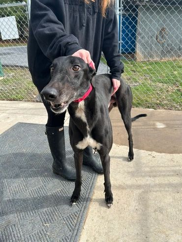 Jethro is a big boy with a lot of energy to burn. He is very Sweet and he is getting along well with the other Greys at the kennel. He did just arrive so we are still getting to know him and will update you as we do. He will be neutered this week and should be ready to go by the weekend.